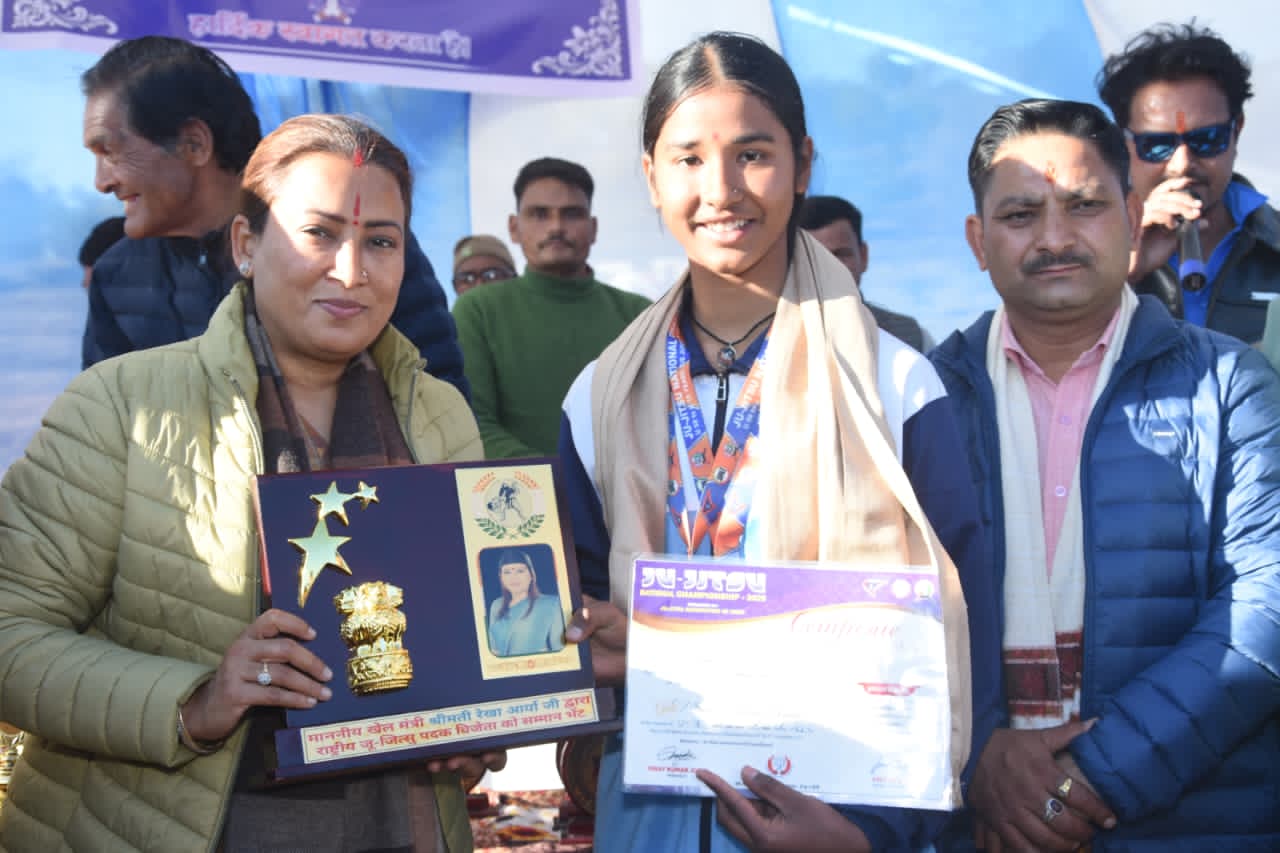 इस अवसर पर कैबिनेट मंत्री रेखा आर्या ने कहा कि प्रदेश में खेल ढांचे का लगातार विस्तार किया जा रहा है और अब दूर दराज की गांव में भी खेल मैदान और मिनी स्टेडियम बनाने पर सरकार का फोकस है। उन्होंने कहा कि प्रदेश में खेल संस्कृति विकसित हो रही है और ऐसे में पहाड़ी क्षेत्र के युवाओं को खेल को करियर के रूप में अपनाना चाहिए।