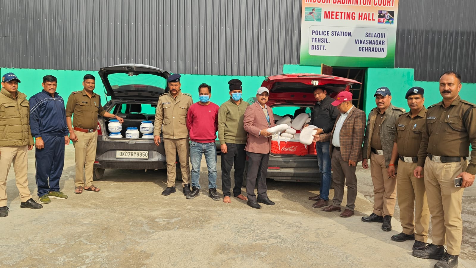 थाना सेलाकुई :- एसएसपी देहरादून द्वारा सभी अधीनस्थों को नियमित रूप से मिलावटी खाद्य पदार्थों की कालाबाजारी तथा विक्रय में लिप्त व्यक्तियों पर लगातार सतर्क दृष्टि रखते हुए प्रभावी कार्यवाही के निर्देश दिए गए हैं। इसी क्रम में वरिष्ठ पुलिस अधीक्षक को मिली गोपनीय सूचना पर थाना सेलाकुई पुलिस द्वारा कार्यवाही करते हुये आज 02/02/2026 को सेलाकुई बाजार में चैकिंग के दौरान माया देवी यूनिवर्सिटी के पास धूलकोट तिराहे से सेलाकुई बाजार की और तेज गति से आती हुई कार संख्या UK07FH7883 ब्रेजा लाल रंग को एवं कार संख्या UK07BY 9350 बलेनो को पुलिस टीम द्वारा रोककर चैक किया गया तो कार संख्या UK07FH7883 में तथा कार संख्या UK07BY 9350 में भारी मात्रा में पनीर व दही रखी गयी थी। जिसके सम्बन्ध में वाहन चालकों द्वारा उक्त पनीर को नकली होना बताया गया, जिस पर पुलिस टीम द्वारा वरिष्ठ खाद्य आपूर्ति अधिकारी को अवगत करते हुये उनकी टीम को मौके पर बुलाया गया जिनके द्वारा उक्त पनीर एवं दही की मौके पर सेंम्पलिंग की गयी तो उक्त पनीर एवं दही का नकली होना पाया गया। जिस पर पुलिस एवं खाद्य विभाग की टीम के द्वारा आवश्यक विधिक कार्यवाही करते हुये नकली पनीर एवं नकली दही को नष्ट किया गया अभियुक्तों के विरूद्ध थाना सेलाकुई में सम्बन्धित धाराओं में अभियोग पंजीकृत कर दोनों वाहनों चालकों को गिरफ्तार कर उनके वाहनों को सीज किया गया।
